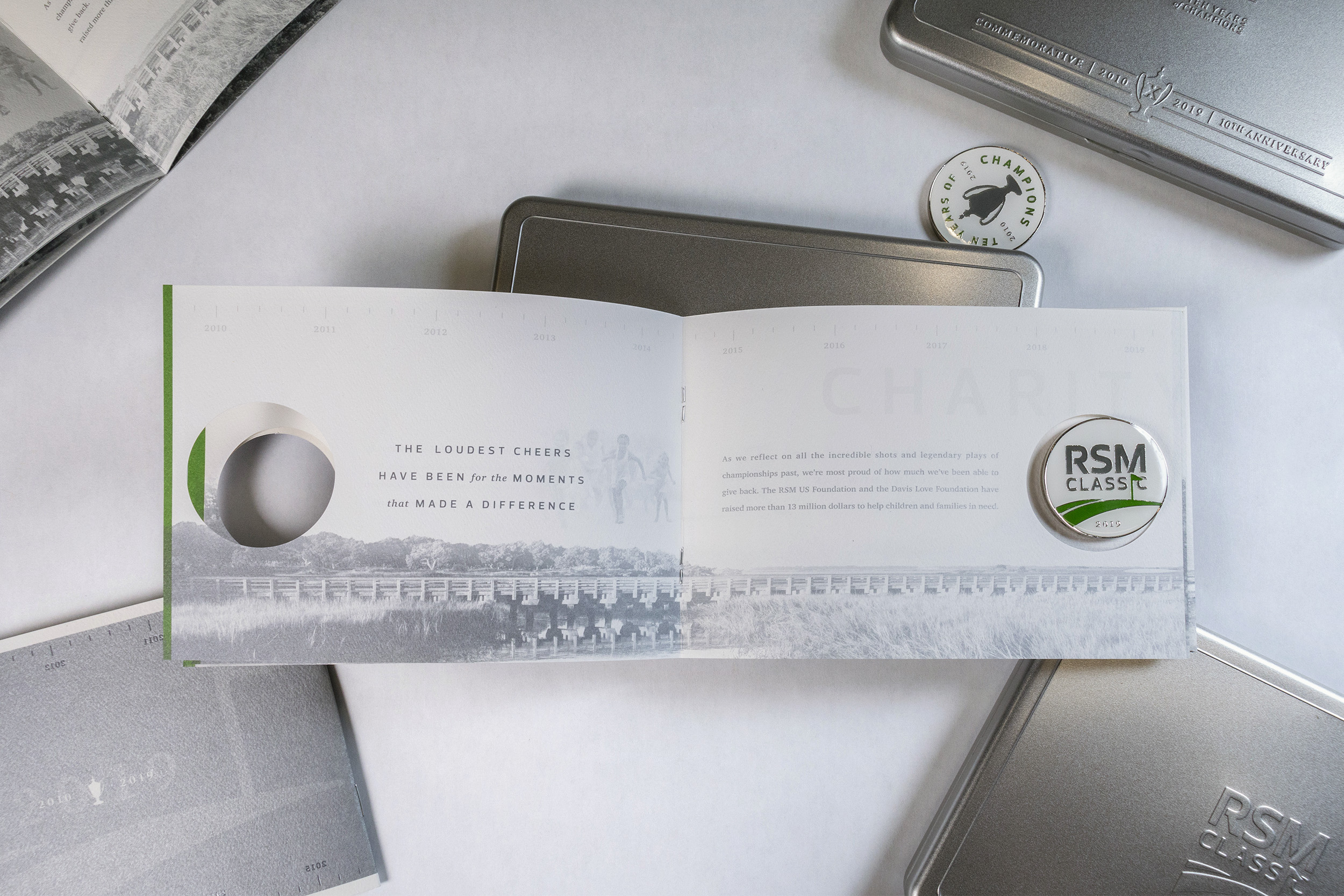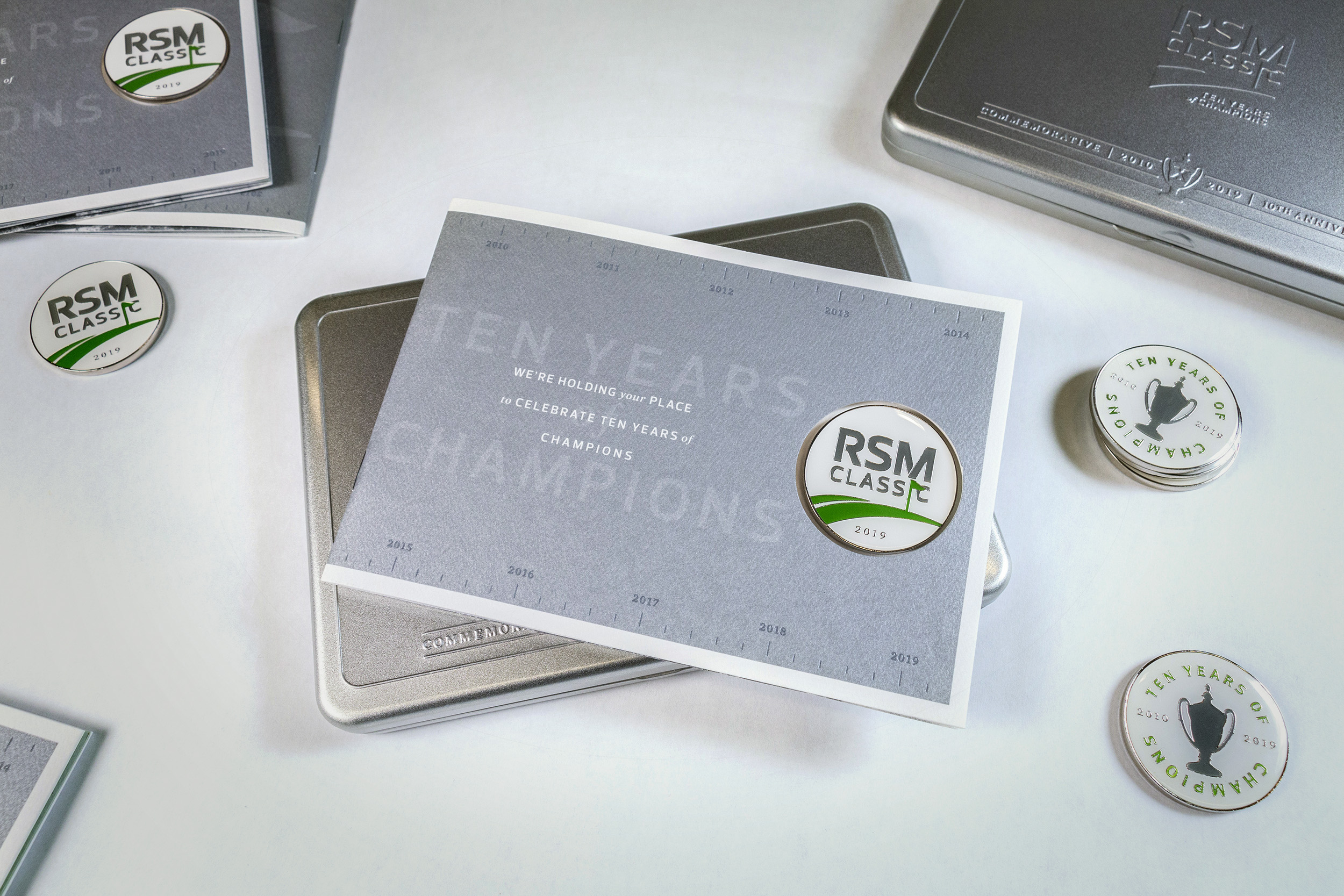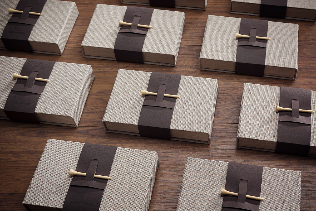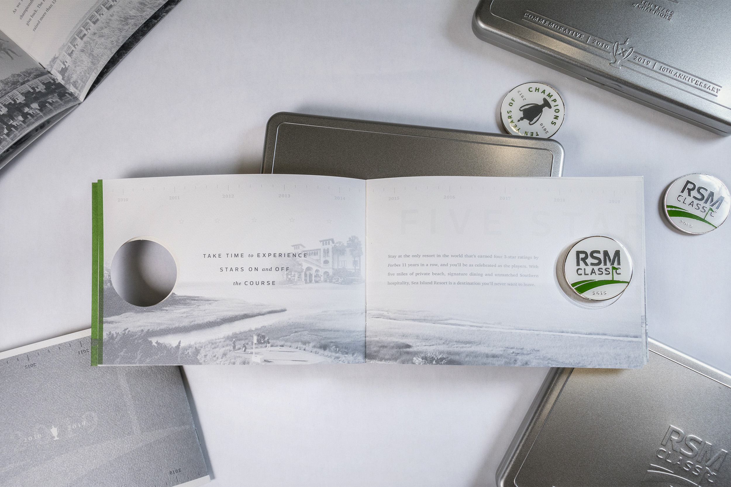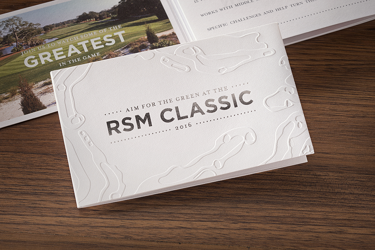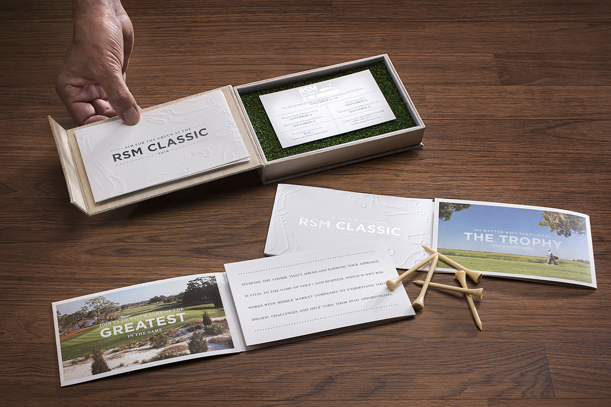 The RSM Classic is an official PGA TOUR event in Sea Island, Georgia. These upscale invitations were sent over several years inviting potential and current RSM clients to the event.